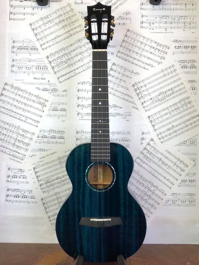 The EUT-MAD tenor ukulele is another unique instrument from Enya. We couldn't resist bringing the MAD series ukes to SUS... This all solid mahogany ukulele have been stained a turquoise-ish/ocean blue colour and Enya manage to do that rare thing of looking quirky but still sounding nice and traditional.
