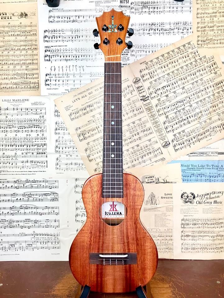 This instrument has a tenor scale length and neck, on a concert body. So, if you like the tenor feel but the concert sound, this is a perfect compromise. It has that typical loud, but full sound that KoAloha manage to coax out of Koa; and what pretty Koa it is too! It is the lovely pinky/orangey colour that is so sought after, but rarely found.