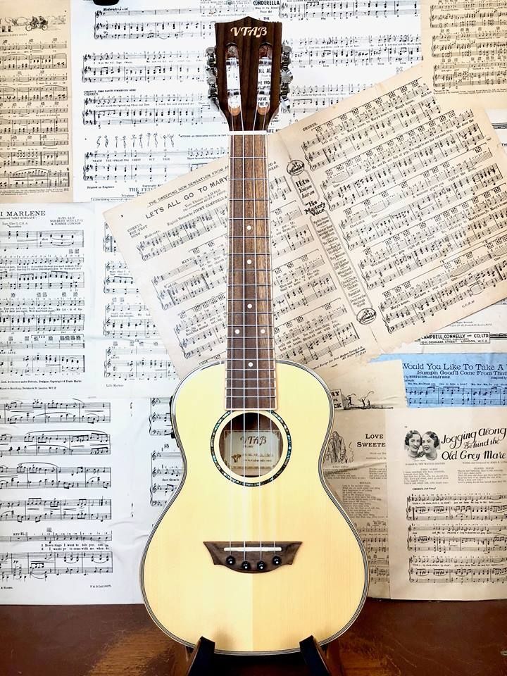 Another great affordable Ukulele from VTAB that offers far more than the price suggests.. This model has a solid Spruce top, laminate Mahogany back and sides with a light stain and a great VTAB preamp on the side allowing you to be your own sound engineer mid gig.